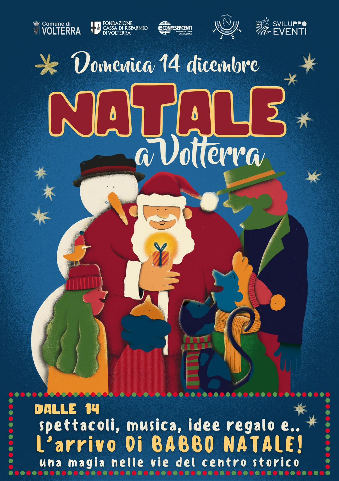 Descrizione Vieni a festeggiare il Natale a Volterra! Dalle 14, spettacoli musica, idee regalo e l'arrivo di Babbo Natale! https://static-www.comune.volterra.pi.it/wp-content/uploads/2025/12/video-natale.mp4