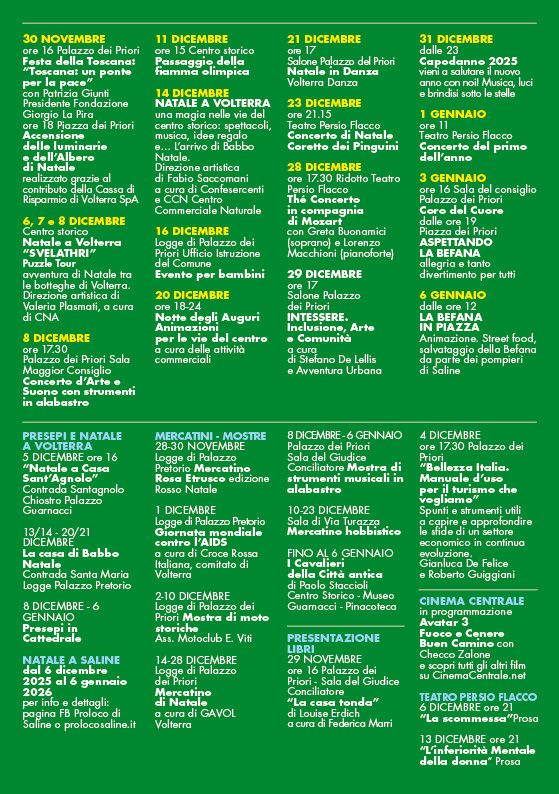 A Volterra un programma natalizio ricco di eventi, atmosfera e momenti da condividere.