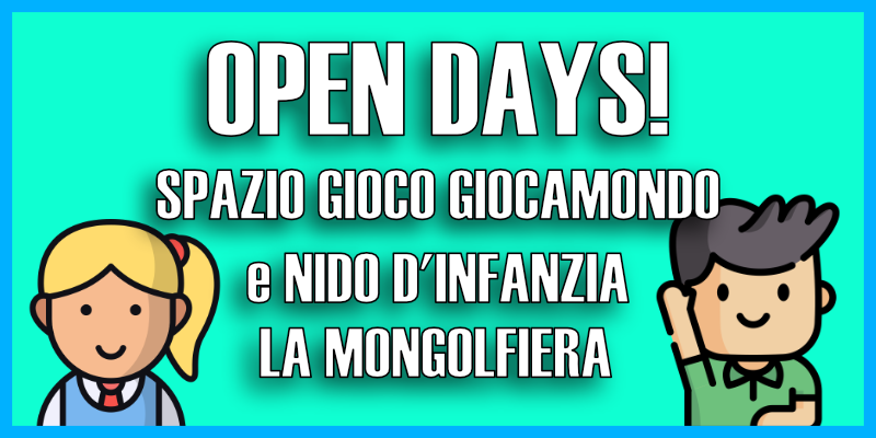 In vista dell'uscita del bando per l'iscrizione ai servizi educativi, le famiglie sono invitate agli open day nei giorni 25 marzo e 9 aprile dalle 16.00 alle 17.30 per visitare il Nido d'Infanzia "La Mongolfiera" e lo spazio gioco "Giocamondo