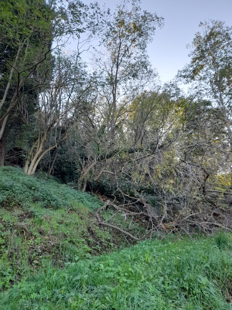 Notevole frana che ha causato la caduta di alberi molto grandi, originatasi presumibilmente nel terreno di altra proprietà, confinante con il mio terreno. Gli alberi sono caduti sul mio terreno e su un tratto dell'itinerario turistico Urban trekking che attraversa la valle, impedendone la viabilità.